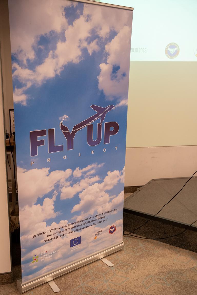 Projekt FLY UP – Jačanje sindikalnog organiziranja u sektoru zračnog prometa sufinanciran je iz sredstava Europskog socijalnog fonda Plus (ESF+). Ukupna vrijednost projekta iznosi 360.144,88 EUR i u najvećem dijelu je financiran sredstvima EU te je u dvogodišnjem razdoblju provedbe, tijekom 2025. i 2026. godine, usmjeren na osnaživanje kapaciteta sindikata i promicanje socijalnog dijaloga u sektoru zračnog prometa.